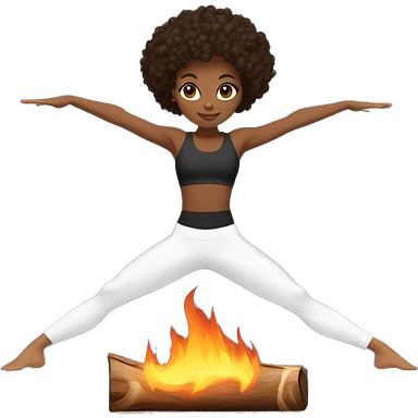 light skin black girl with dark brown chest length curly hair in fire log yoga pose emoji