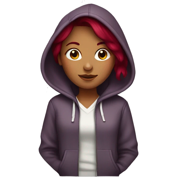 girl with burgundy hair with a hoodie emoji | AI Emoji Generator