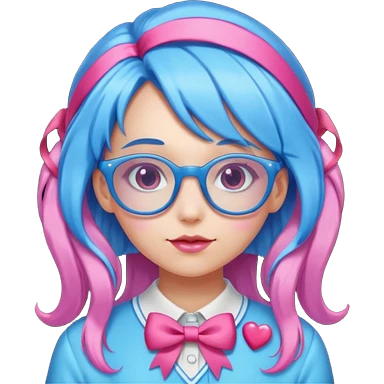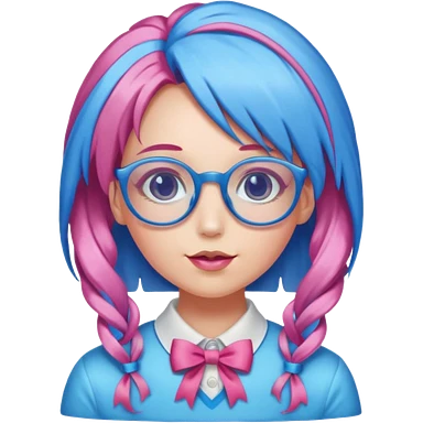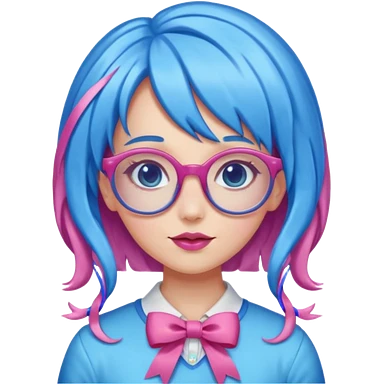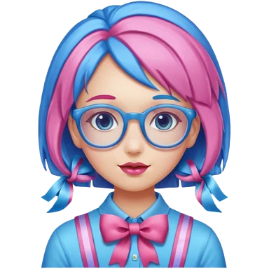 candy girl with very long blue-pink mixed candy hair with ribbon and no tattooes, with glassess emoji