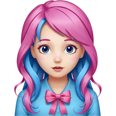 candy girl with very long blue-pink mixed candy hair with ribbon and no tattooes emoji
