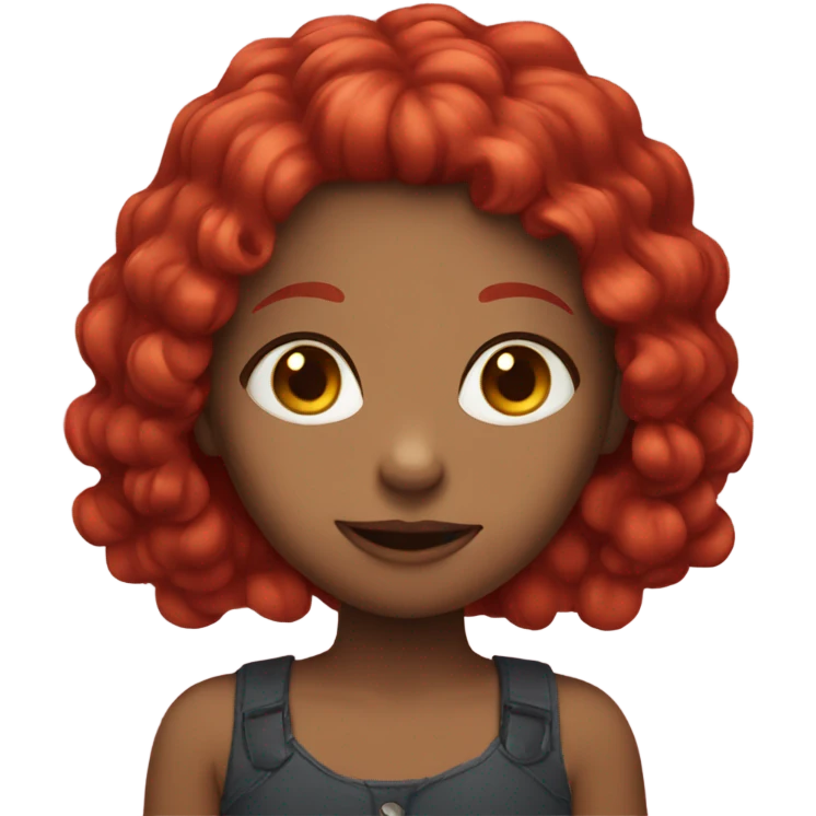apple style emoji of a fair-skinned girl with messy cherry red hair, wearing a black t-shirt, black eyeliner, black lipstick, septum piercing, and multiple ear piercings emoji