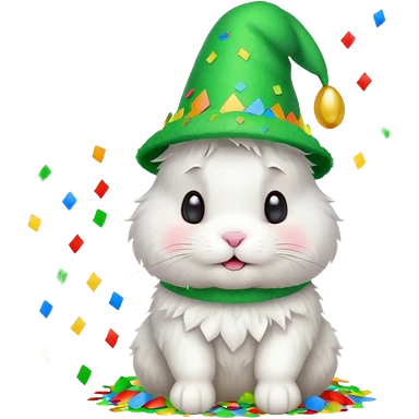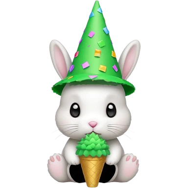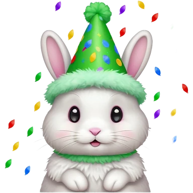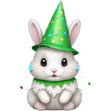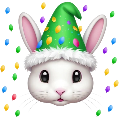 Rabbit in Green Party Hat – white bunny with cone party hat and confetti. emoji