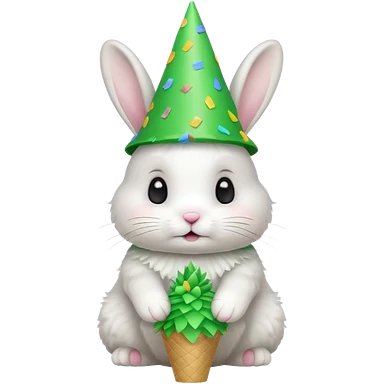 Rabbit in Green Party Hat – white bunny with cone party hat emoji