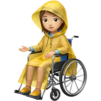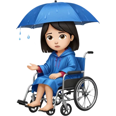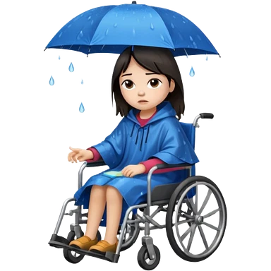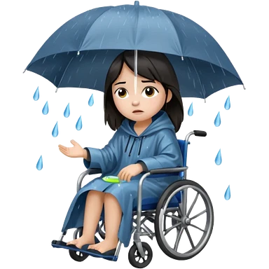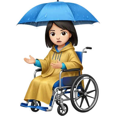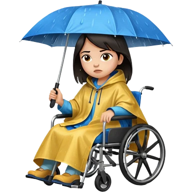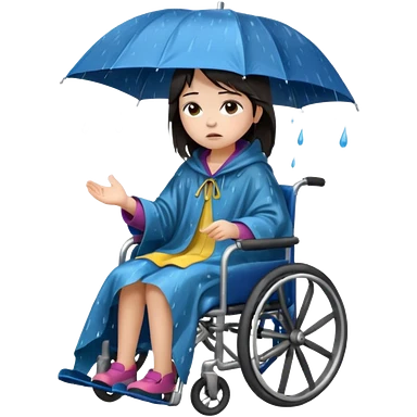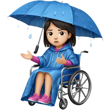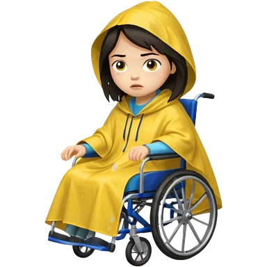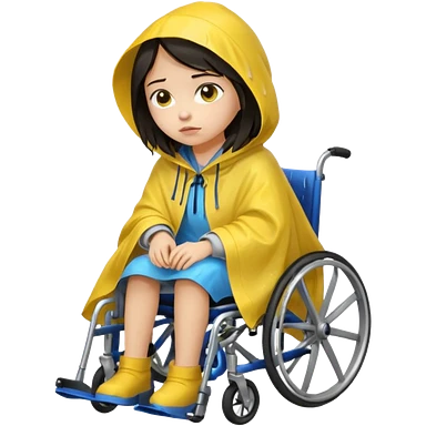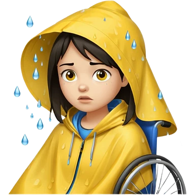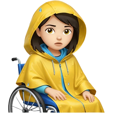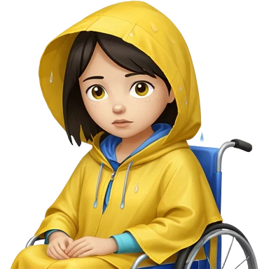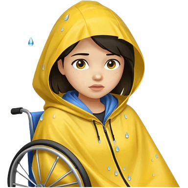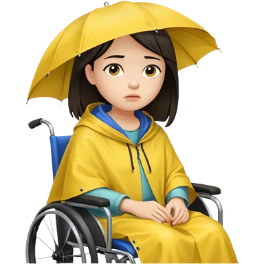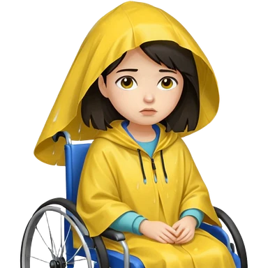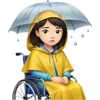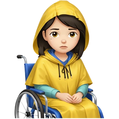 Girl with dark hair in a wheelchair with rain poncho sad emoji | AI Emoji Generator