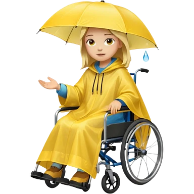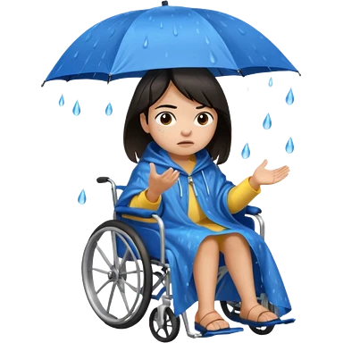 Girl with dark hair in a wheelchair with rain poncho mad with raining emoji