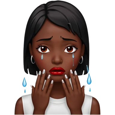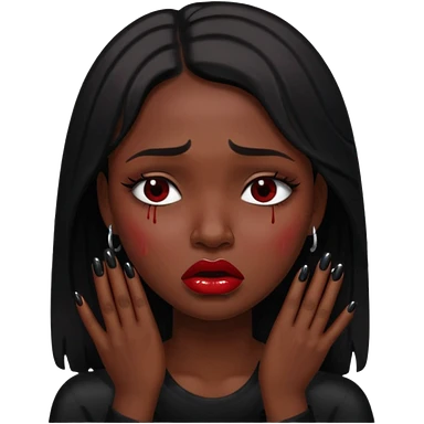 dark skin girl, dark red lipstick, nails very beautiful crying emoji