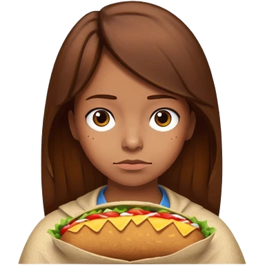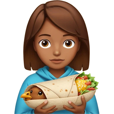 Girl with brown hair "resting chicken burrito face" emoji