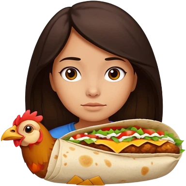 Girl with DARKBROWN hair "resting chicken burrito face" emoji | AI Emoji Generator