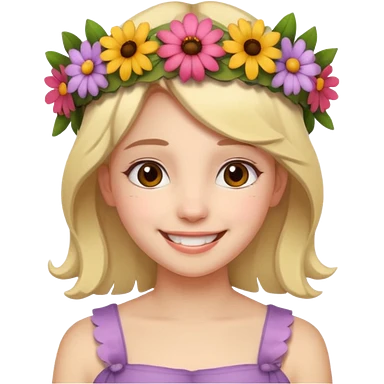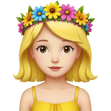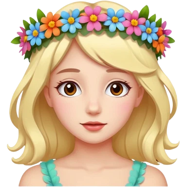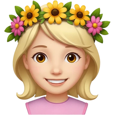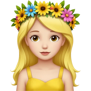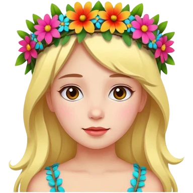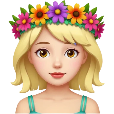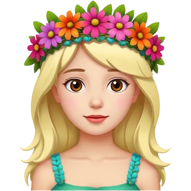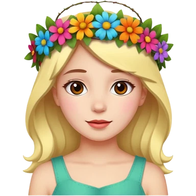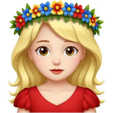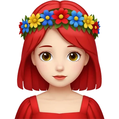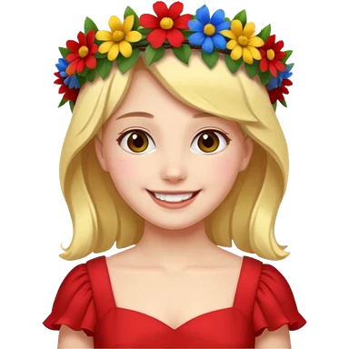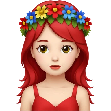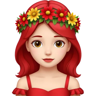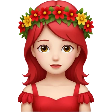 girl with flower crown in red dress and colored flowers emoji | AI Emoji Generator