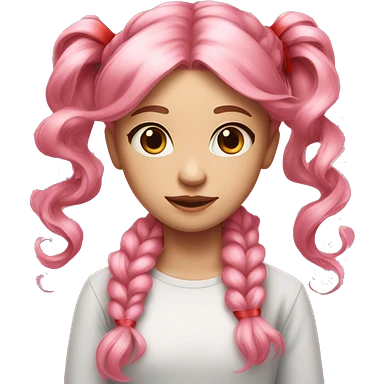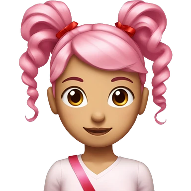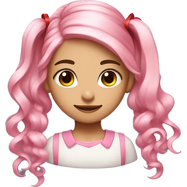 Girl with light pink hair and a ponytail supported by a red ribbon with long curly hair sides and pink eyes emoji