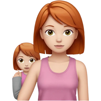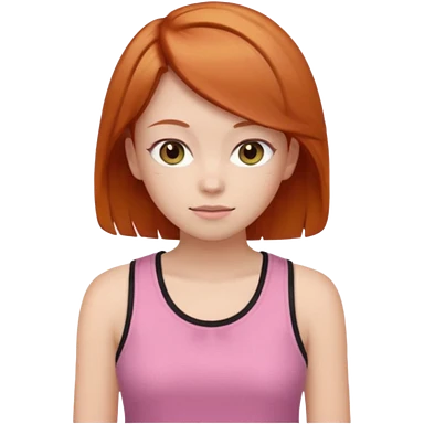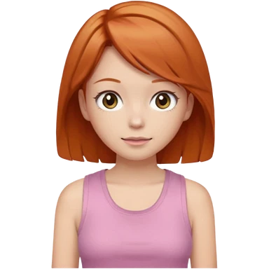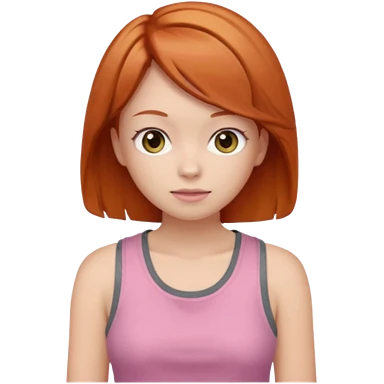 Create emojis of a girl with ginger hair and a hime haircut, gray eyes. She's wearing a pink tank top and a brown sweatshirt. emoji