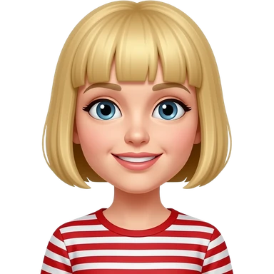 girl with golden short hair bangs wear red stripe emoji | AI Emoji Generator