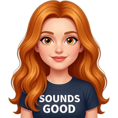 sexy girl with overlong ginger hair and ginger eyes a top with SOUNDS GOOD written on it emoji