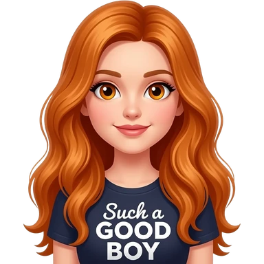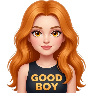 sexy girl with overlong ginger hair and ginger eyes a top with GOOD BOY written on it emoji