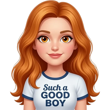 sexy girl with overlong ginger hair and ginger eyes a top with Such a GOOD BOY written on it emoji