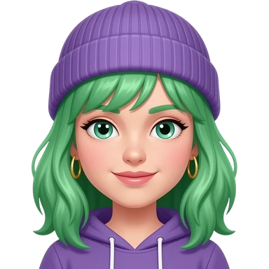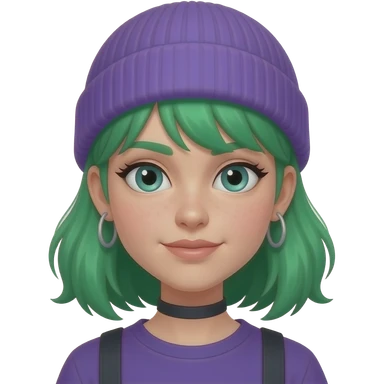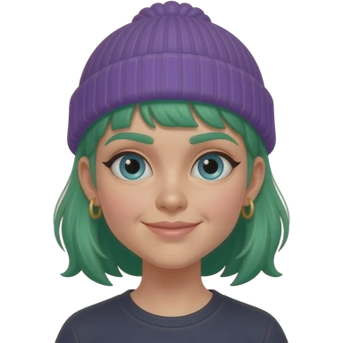 green haired girl with purple beanie and earrings emoji