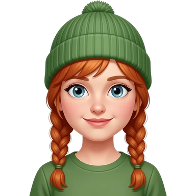 red haired braided girl with green beanie emoji