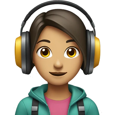 gamer, black hair girl with glasses, headphone, gamepad emoji