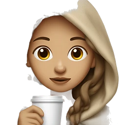 olive skin brunnette curly hair girl snuggled in big blanket drinking coffee emoji