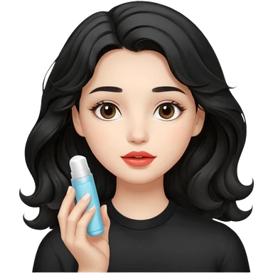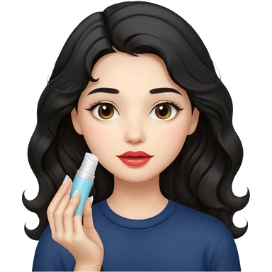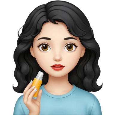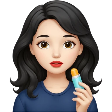 “Girl with light-black wavy hair, soft and flowing. She holds a lip balm just near her lips, about to apply it. The lip balm gives her lips a subtle glossy shine, making them look smooth, hydrated, and naturally pretty emoji | AI Emoji Generator