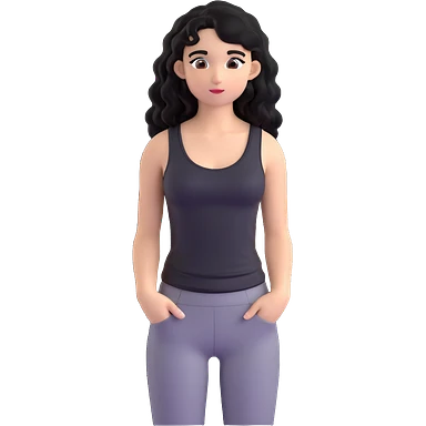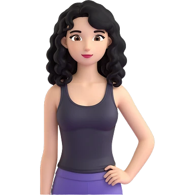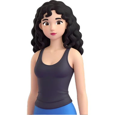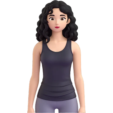 A girl with long, curly black hair wearing a thin black tank top is a K-pop idol. emoji
