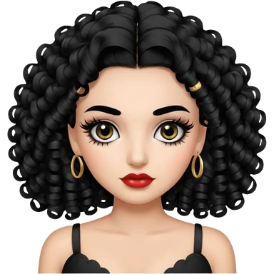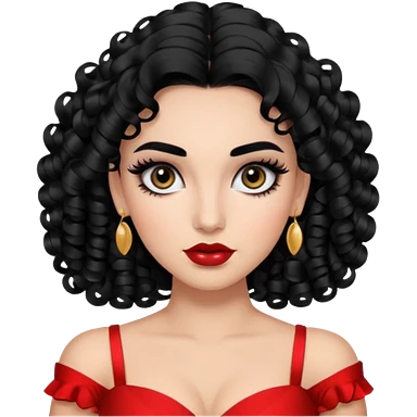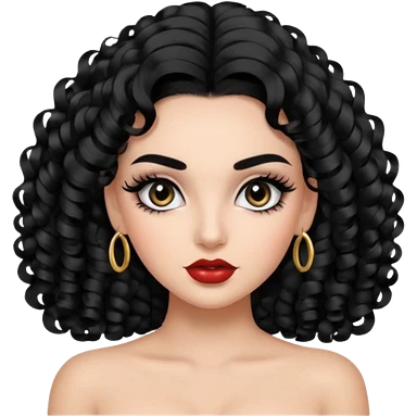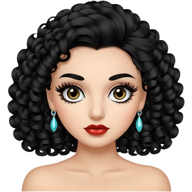 generate the emoji of a girl with fair skin, black hair, bombshell curls, black eyes, long false eyelashes, black eyebrows, latina makeup emoji