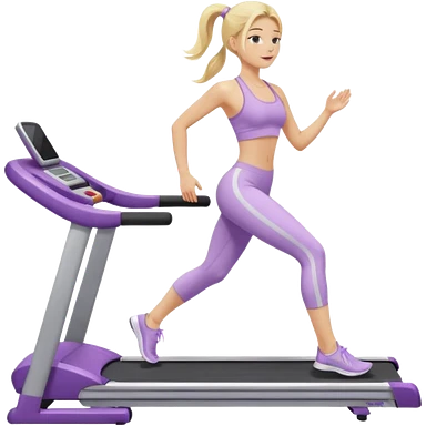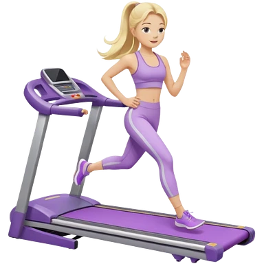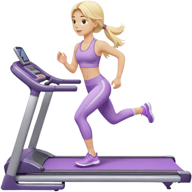 girl with long blonde hair on treadmill wearing light purple yoga set emoji