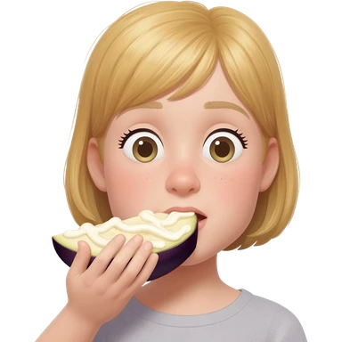 Make a girl eating a eggplant with white mayo sause on it and she’s has blonde hair emoji