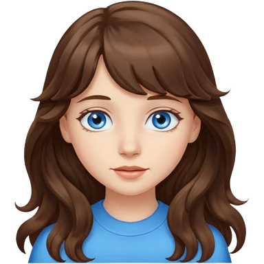 Blue eyed girl with long brown wavy hair and fringe emoji