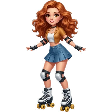 sexy girl with long curly ginger hair and ginger eyes is doing roller skating emoji