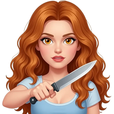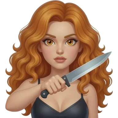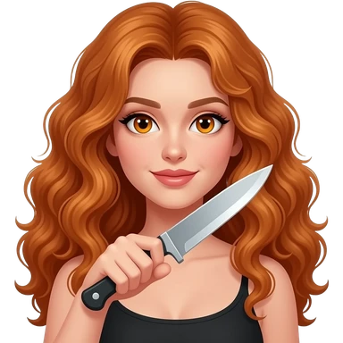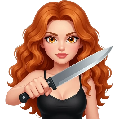 sexy girl with long curly ginger hair and ginger eyes holds a knife emoji