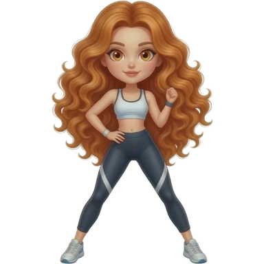 sexy girl with long curly ginger hair and ginger eyes is doing sport emoji