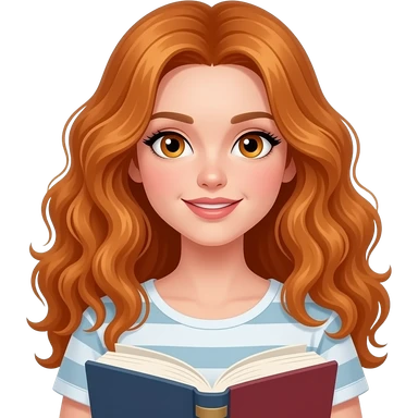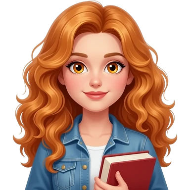 sexy girl with long curly ginger hair and ginger eyes is holding books emoji