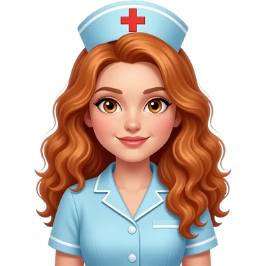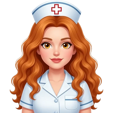 sexy girl with long curly ginger hair and ginger eyes is a nurse emoji