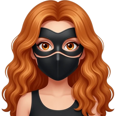 sexy girl with long curly ginger hair and ginger eyes wearing a black mask emoji