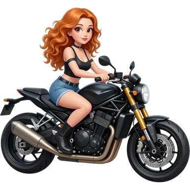 sexy girl with long curly ginger hair and ginger eyes is riding a motorcycle emoji