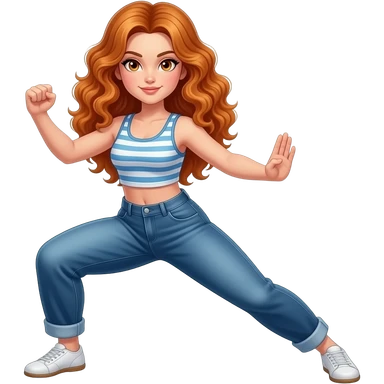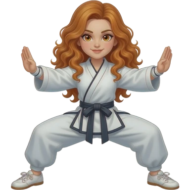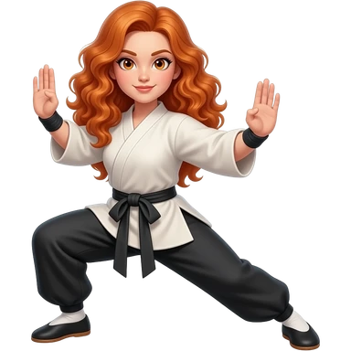 sexy girl with long curly ginger hair and ginger eyes is doing kungfu emoji