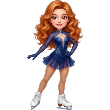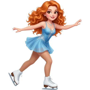 sexy girl with long curly ginger hair and ginger eyes is doing figure skating emoji