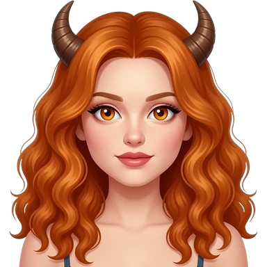 sexy girl with long curly ginger hair and ginger eyes with horns emoji