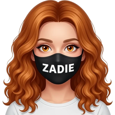sexy girl with long curly ginger hair and ginger eyes wearing a black mask with ZADIE written on it emoji