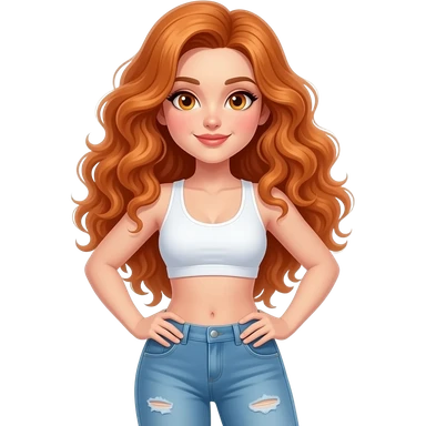 sexy girl with long curly ginger hair and ginger eyes is doing skating emoji