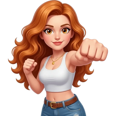 sexy girl with long curly ginger hair and ginger eyes is punching emoji