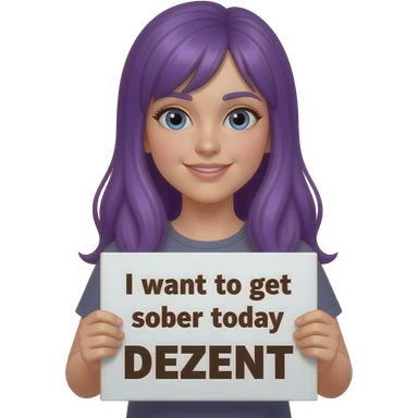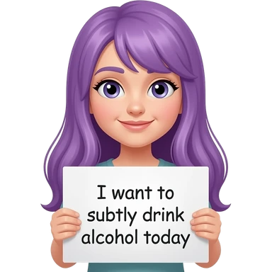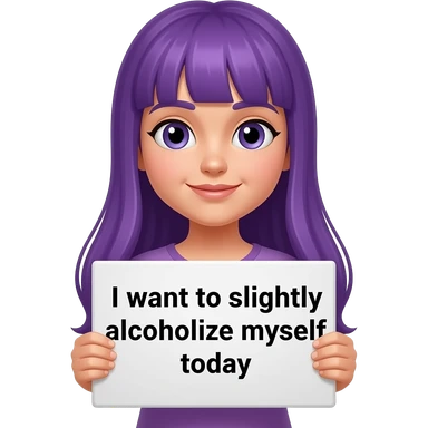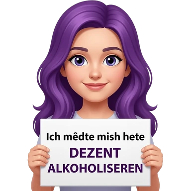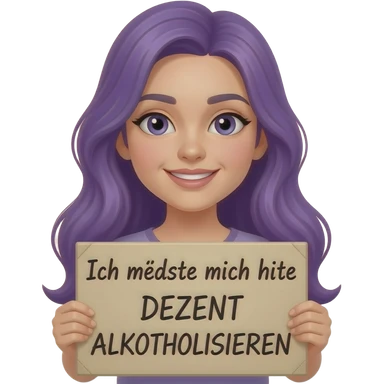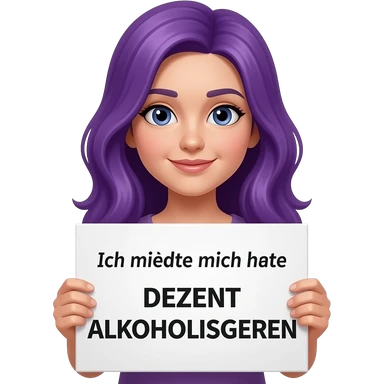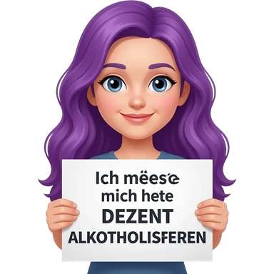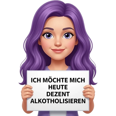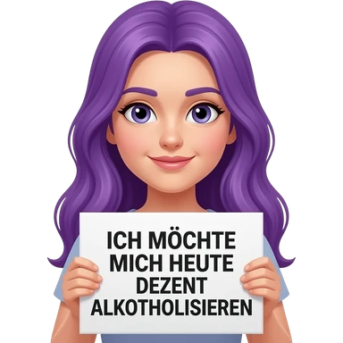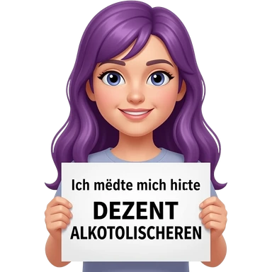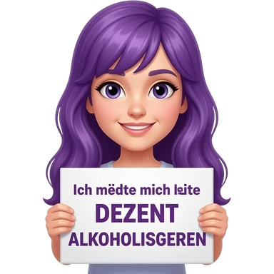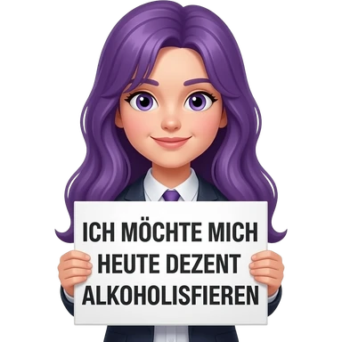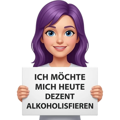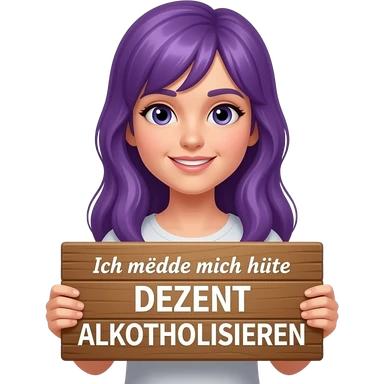 girl with long purple hair holding a ICH MÖCHTE MICH HEUTE DEZENT ALKOHOLISIEREN sign emoji
