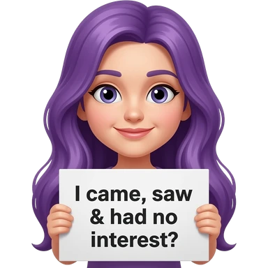 girl with long purple hair holding a Ich kam, sah & hatte direkt keinen BOCK sign emoji