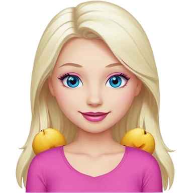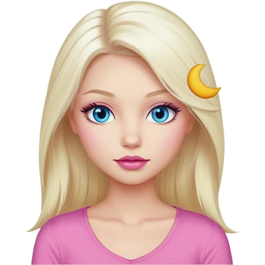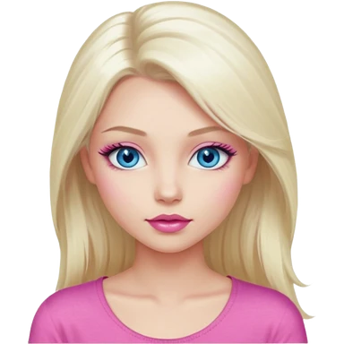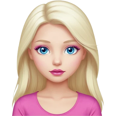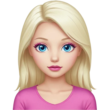 Girl with long platinum blonde hair, blue eyes, long lashes, sexy pink lips, wearing a pink top emoji | AI Emoji Generator