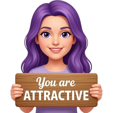 girl with long purple hair holding a You are ATTRACTIVE sign emoji