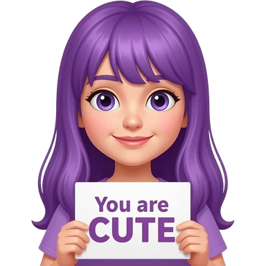 girl with long purple hair holding a You are CUTE sign emoji