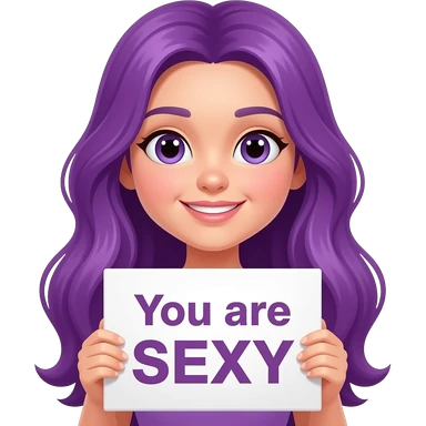 girl with long purple hair holding a You are SEXY sign emoji