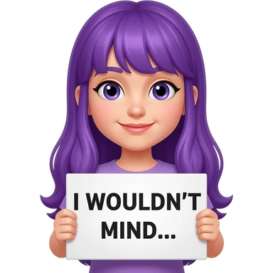 girl with long purple hair holding a I WOULDN'T MIND... sign emoji