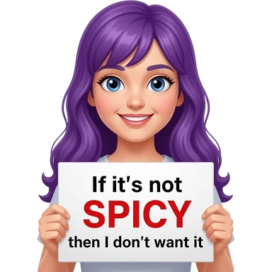 girl with long purple hair holding a If it's not SPICY then I don't want it sign emoji